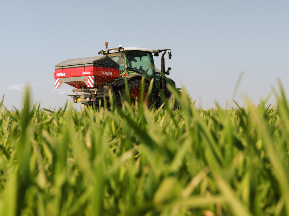 Dwutarczowe zawieszane rozsiewacze nawozów z innowacyjnym ślimakowym systemem dozowania nawozów o pojemnościach od 1200 do 3000 litrów i szerokości roboczej do 36 metrów.