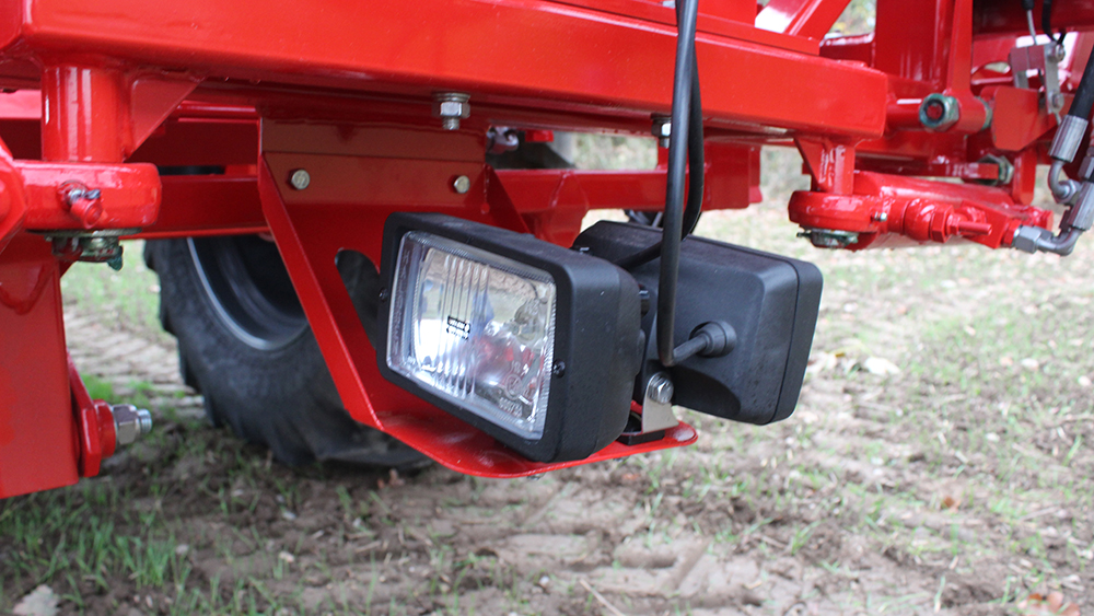 Oświetlenie nocne (światło białe) Dodatkowy zestaw lamp halogenowych montowany na belce polowej oraz nad rozwadniaczem, umożliwia bezpieczną pracę opryskiwaczem nawet w godzinach nocnych. |